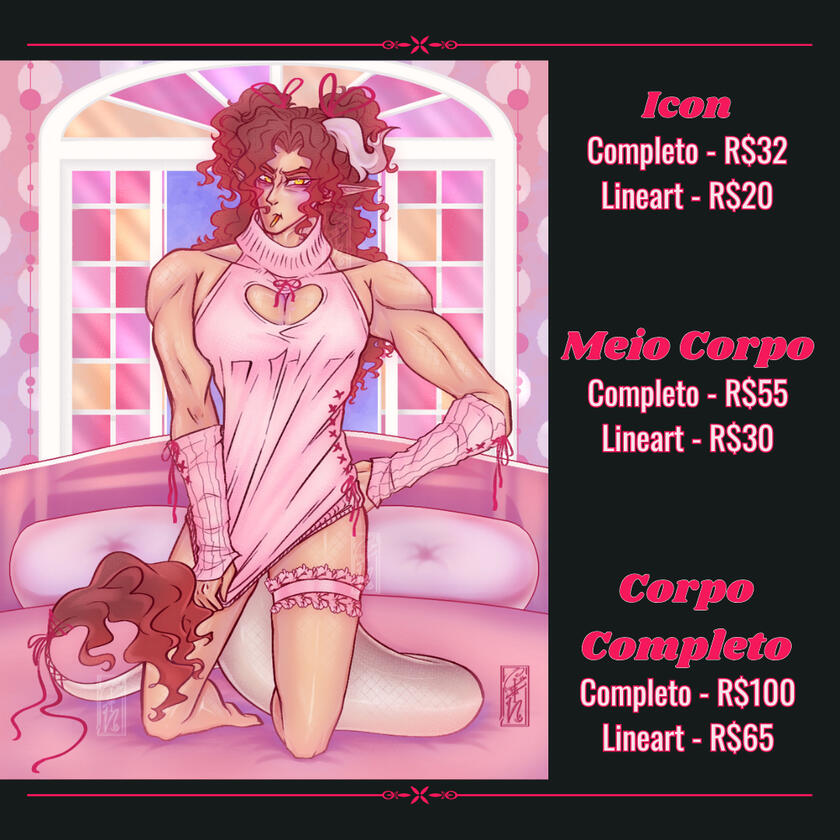 Esses valores acima são para encomendas para uso pessoal do cliente, podendo usar como presente, dentro do seu perfil, canal ou postar em paginas online sem fins lucrativos, em caso de ilustrações para capas de livros para autores iniciantes com publicação apenas online, o uso das imagens para divulgação é livre, em caso de publicação de versões físicos se enquadra como produto.